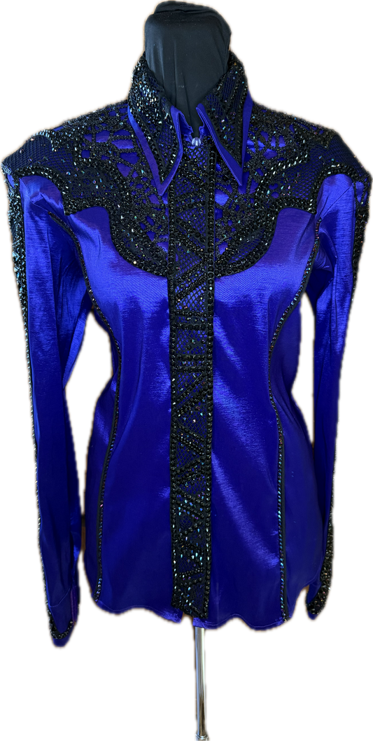 XXL Royal Blue Stretch Taffeta Day Shirt with Gold, Pistachio, Clear, Raspberry