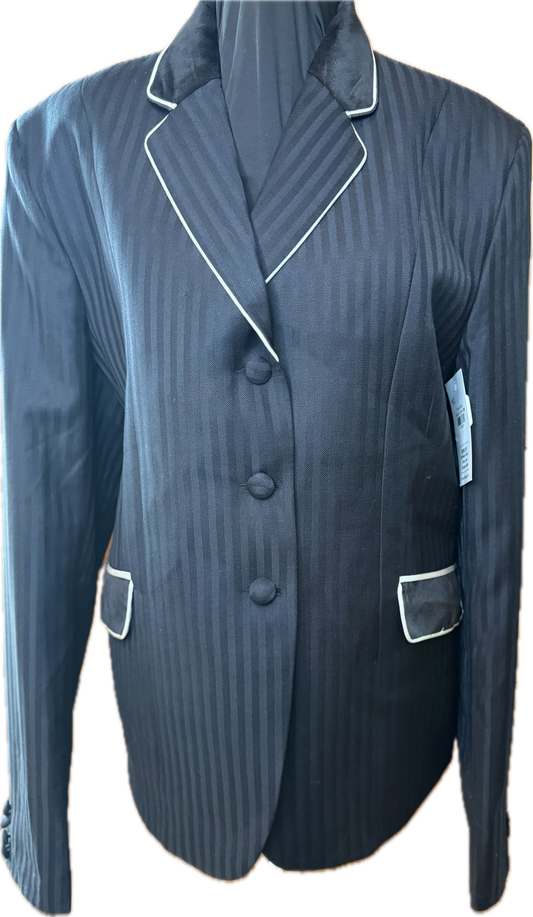 *40 Bust* Black Stripe With Black Velvet Collar and White Piping