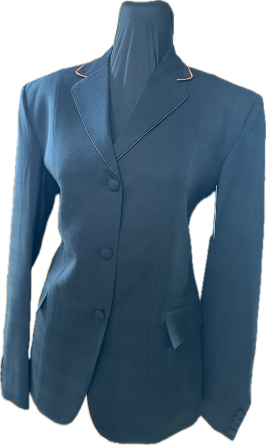 *34 Bust* Black Plaid with Black Velvet Collar and Black Piping