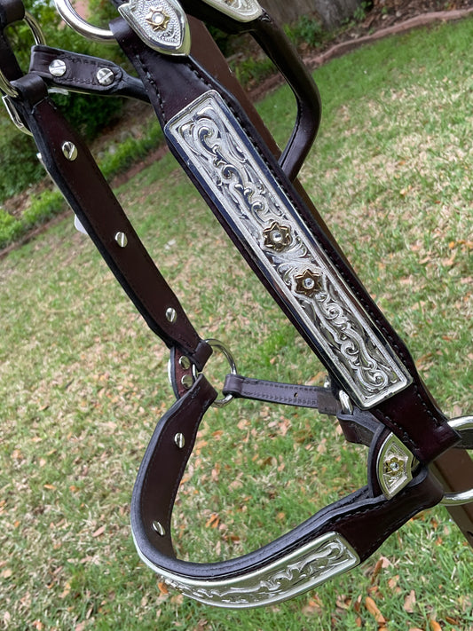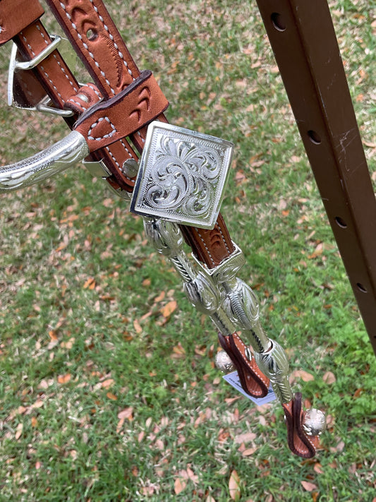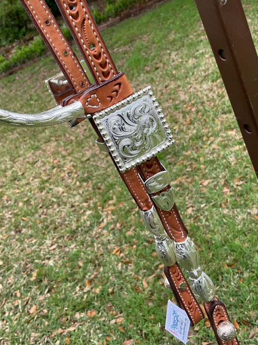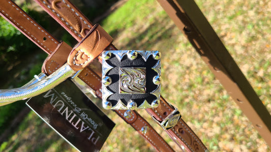 Show headstall light leather with silver Square style