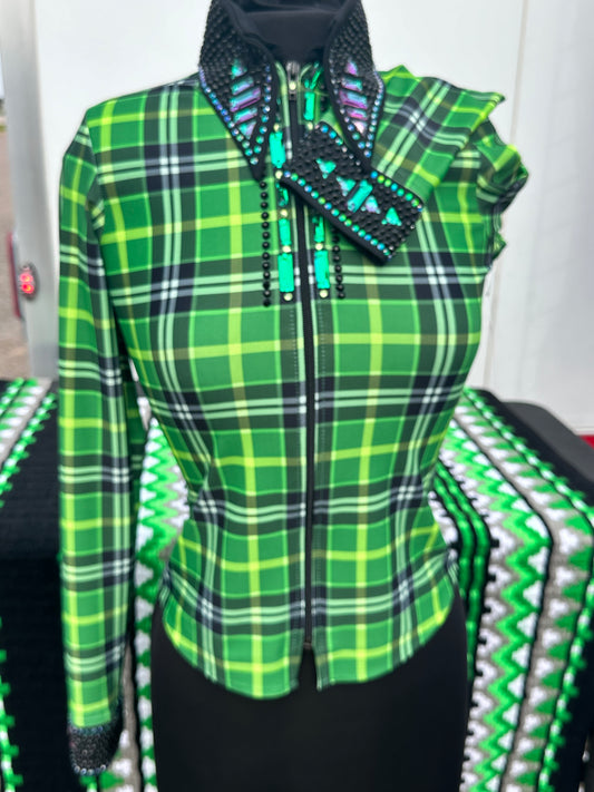 XS day shirt stretch green plaid GORGEOUS!!!!!!!!!!!!!!!!!!!!!!!!!!!
