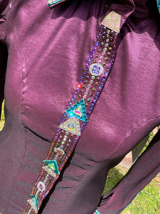 XS day shirt Plum stretch taffeta with turquoise and silver