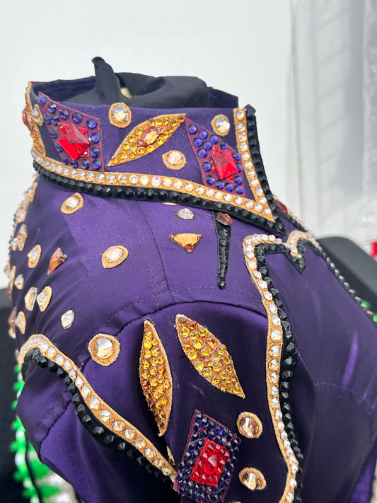 XS day shirt stretch taffeta deep purple french tan black and hints of ruby