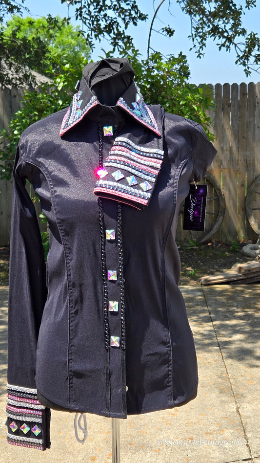 XS Stretch Taffeta day shirt Black with Silver, Black, Pink