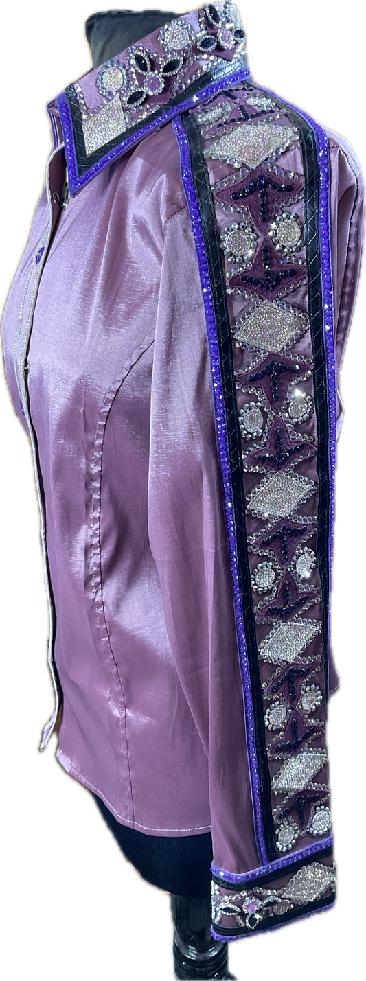XS day shirt Deep Lavender stretch taffeta with purple and silver