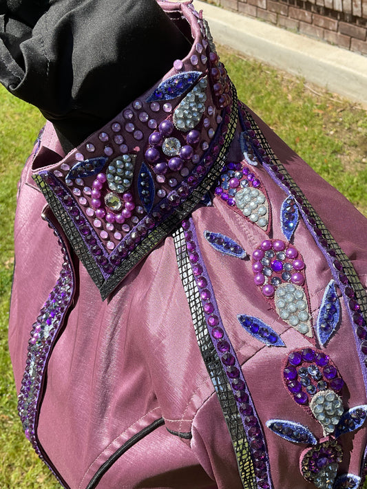 XL Mauve stretch taffeta day shirt with grey and purple accents