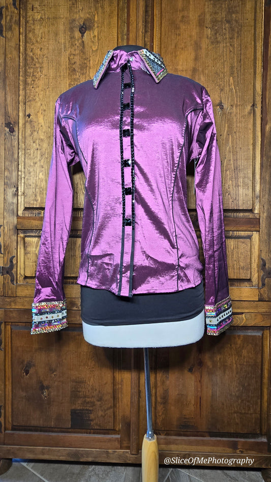 XL Raspberry Day Shirt stretch taffeta with silver and purple