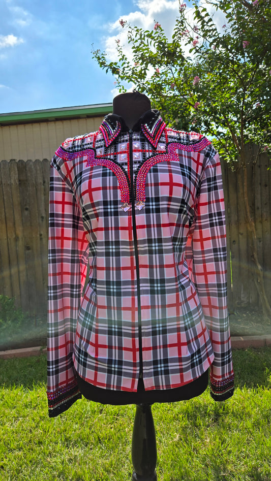 XXL Pink Plaid Stretch Lycra Day Shirt with red and black
