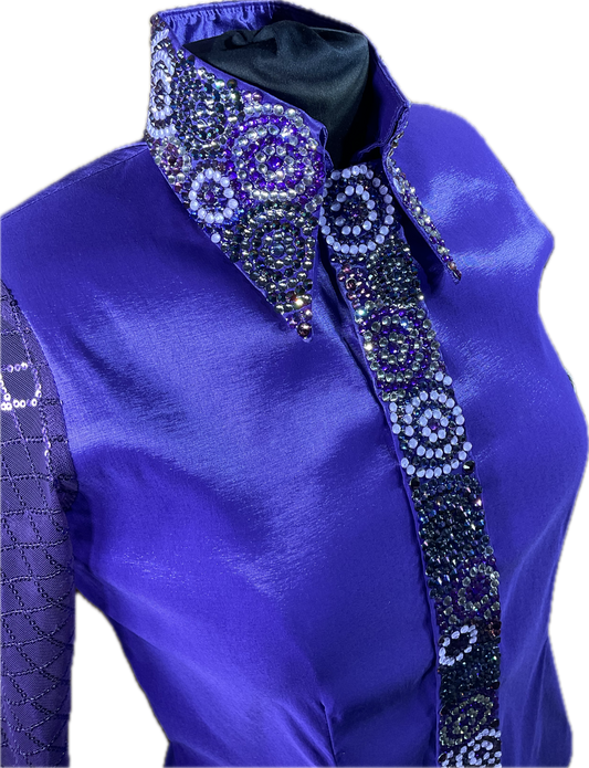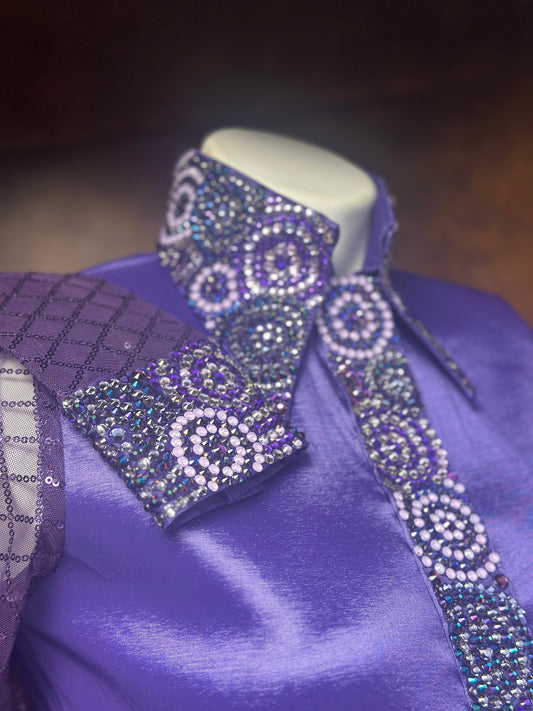 Small purple Stretch Taffeta with freehanded crystal designs and sheer sleeves