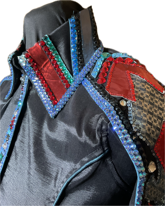 Small Stretch Taffeta Black with Silver, Red, Blue and Green Accents