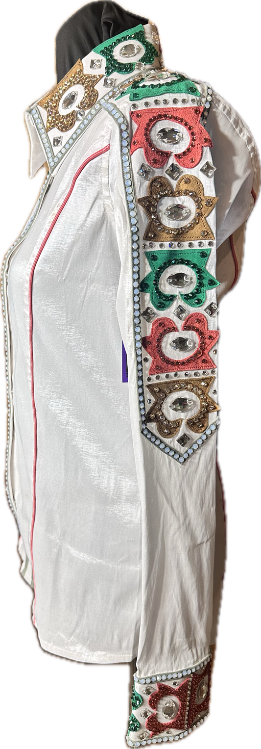 Small Stretch Taffeta White, Coral, Green and Gold Accents