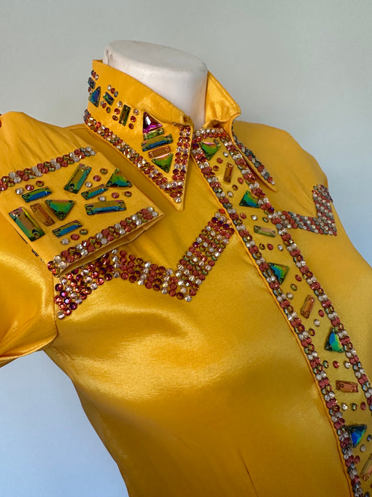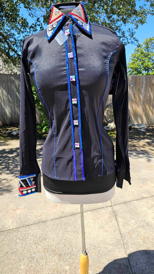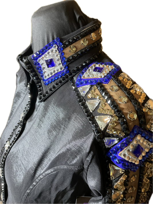 Small Stretch Taffeta Black with Gold, and Royal Blue Accents