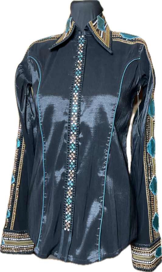 Small Stretch Taffeta Black with Gold, and Turquoise Accents