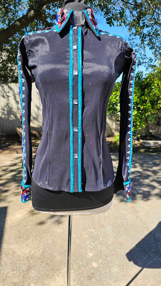 Small Stretch Taffeta Black Day Shirt with Aqua