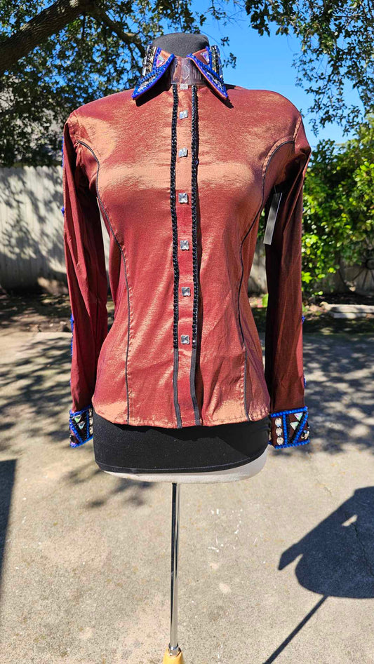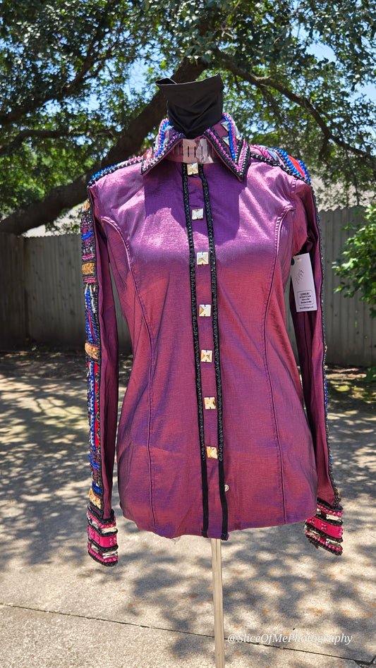 Small Stretch Taffeta day shirt Plum with Black, Pink, Royal Blue