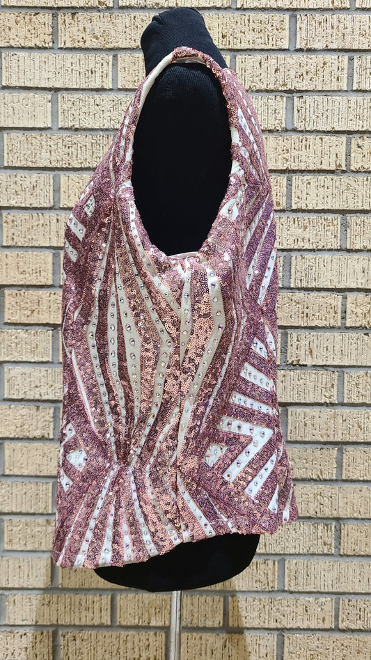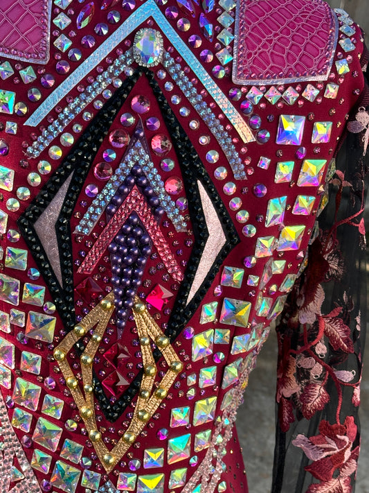 Size Medium Shacket maroon rose gold blush and pink sheer sleeves