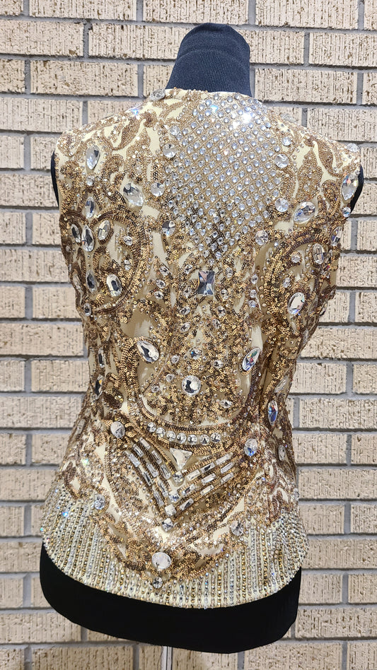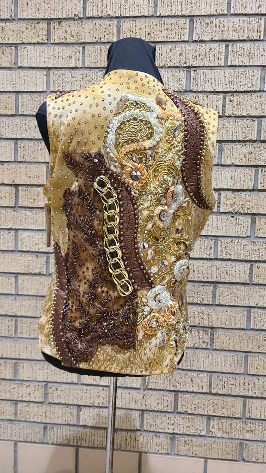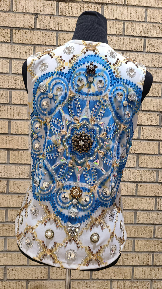 Size small white vest with blue and gold accents. Airbrushed design. STUNNING!
