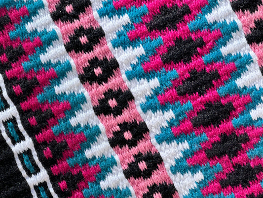 68. Oversized saddle blanket black fuchsia turquoise white and sachet pink