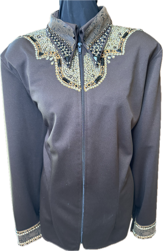 Size Large rust stretch backzip with black accents