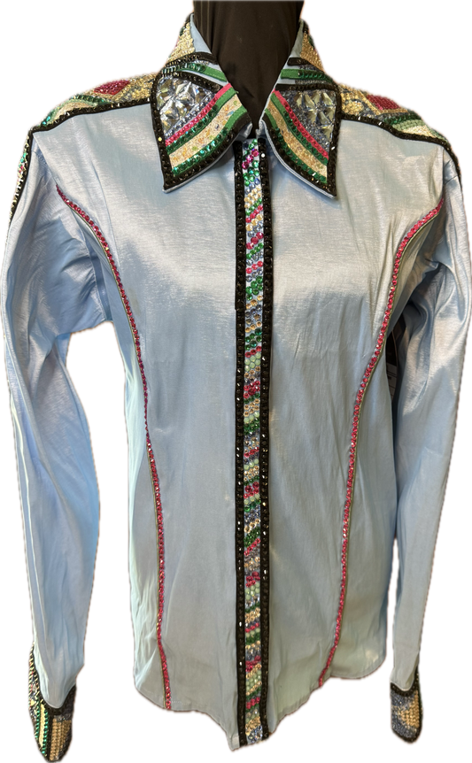 XXL Light Blue Stretch Taffeta with Hot Pink, Dark Green, Light Green and Black Accents