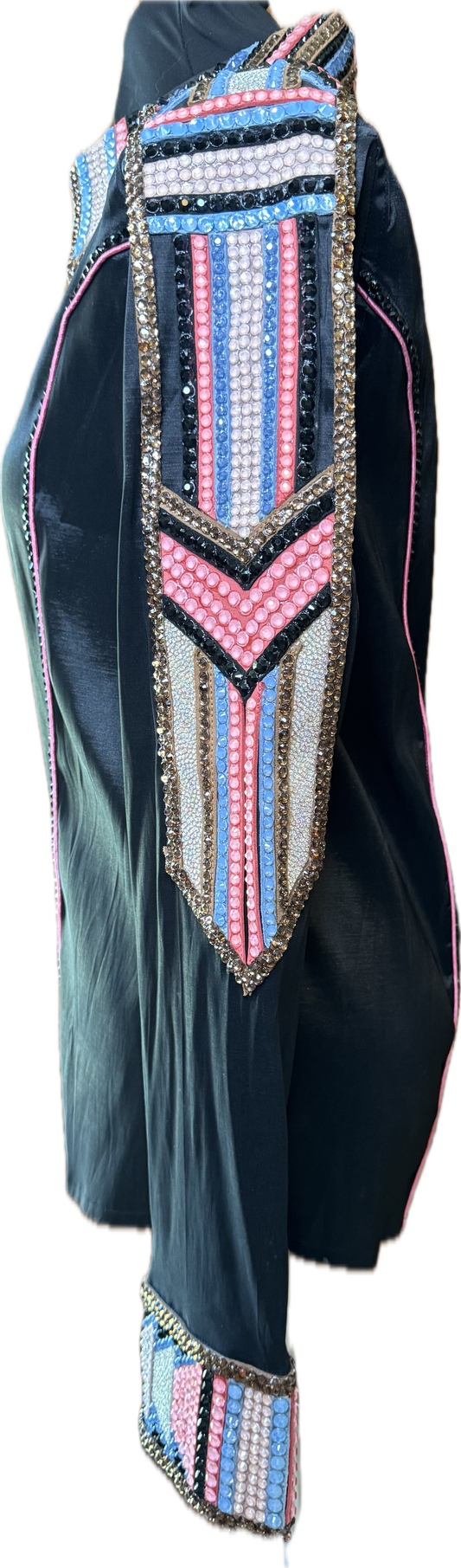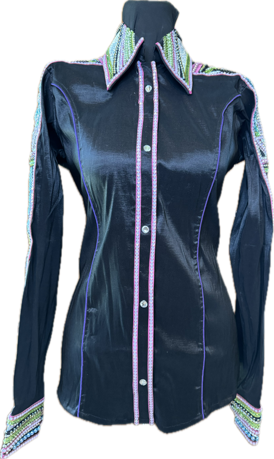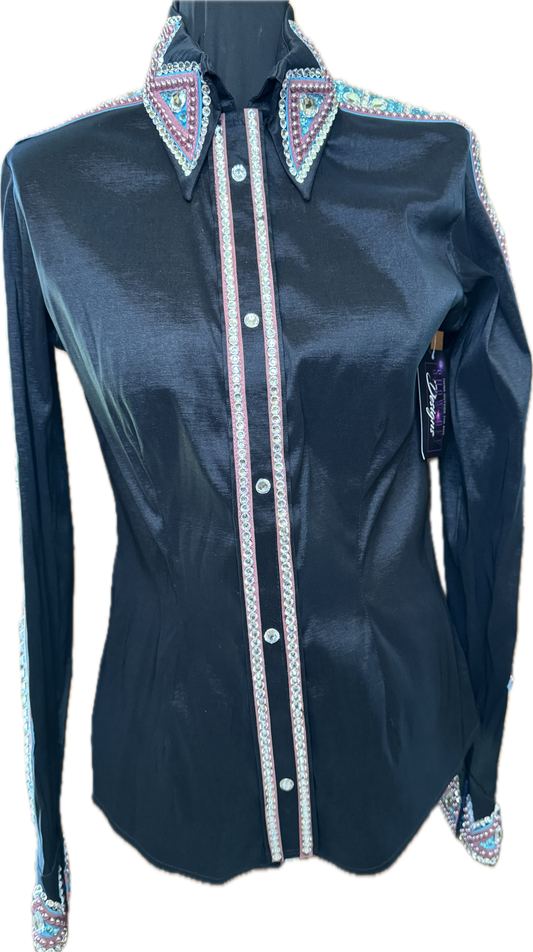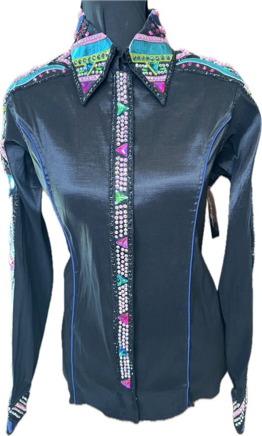Size Medium Black Stretch Taffeta with Mauve and Aqua Accents