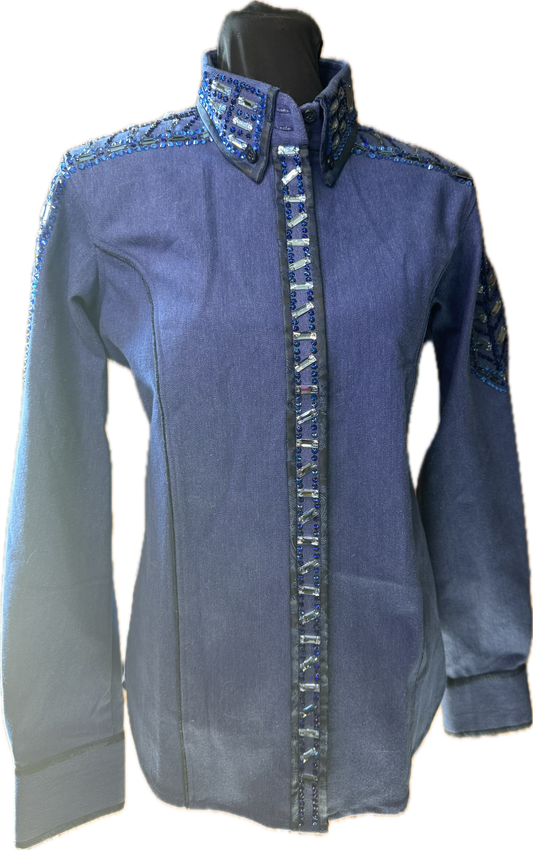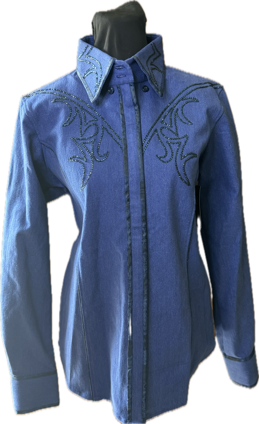 Size Large stretch denim retro design tone on tone shirt