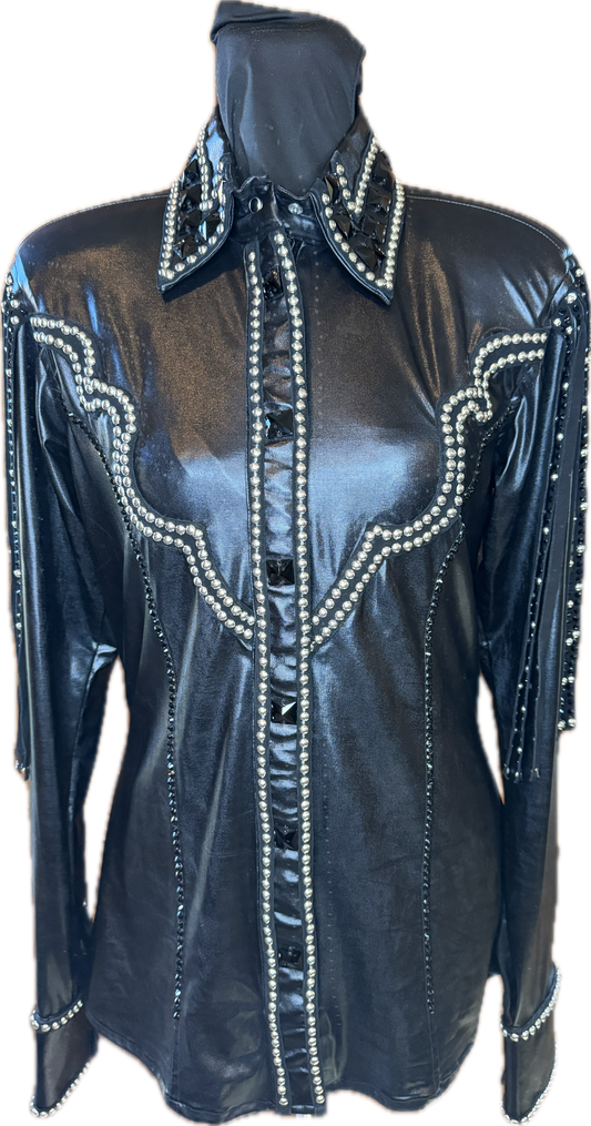 Medium Black Lycra Day Shirt with Shoulder Fringe with Silver and Black