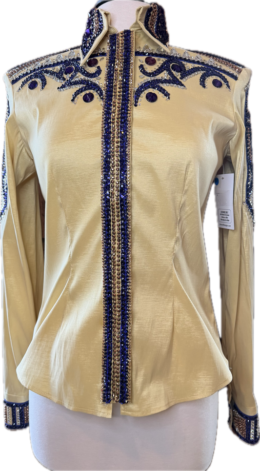 Size Large Purple Stretch Taffeta With Black Retro Design