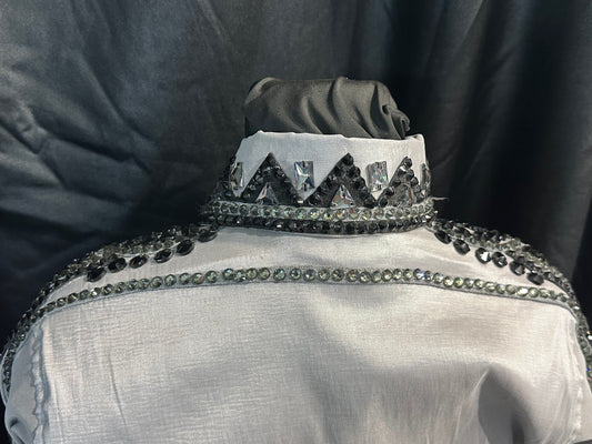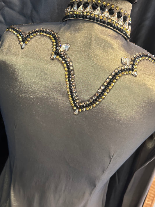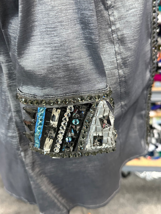 Extra small day shirt silver grey taffeta, hidden zipper with black and silver accents