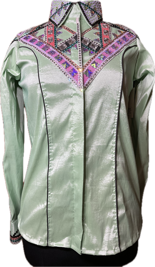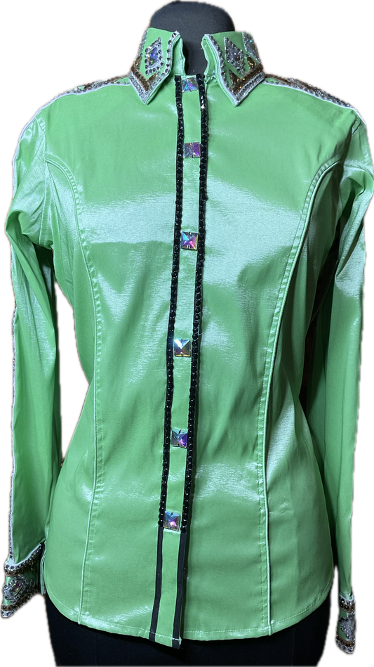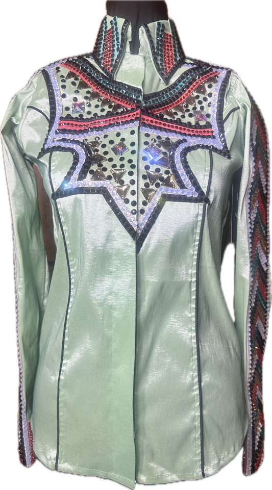 Size Large Mint Green Stretch Taffeta with Black, Silver, Red and Gold