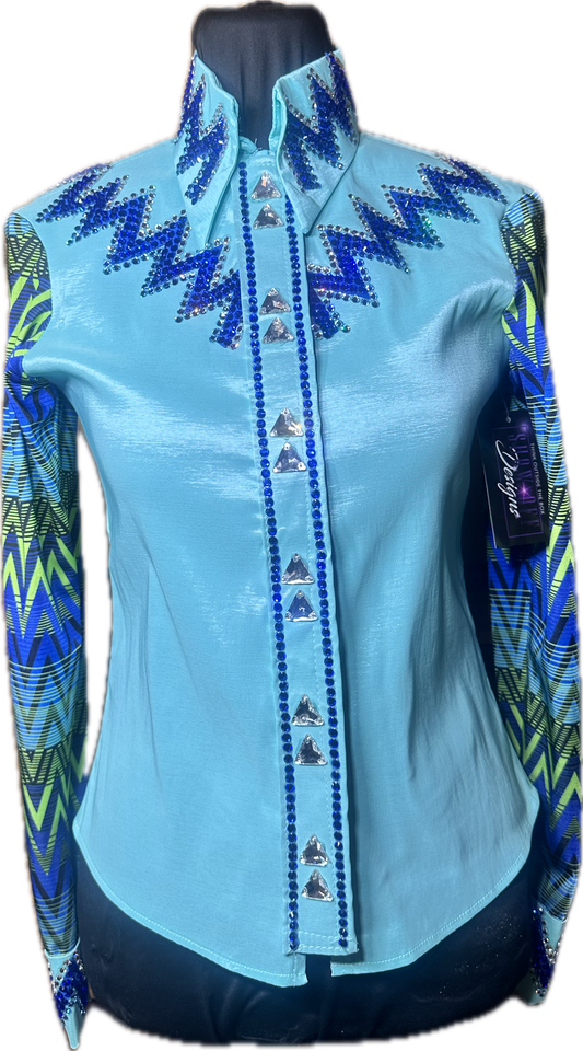 Extra Small Mint Green with Retro Design and Printed Lycra Sleeves. Royal Blue and Clear.