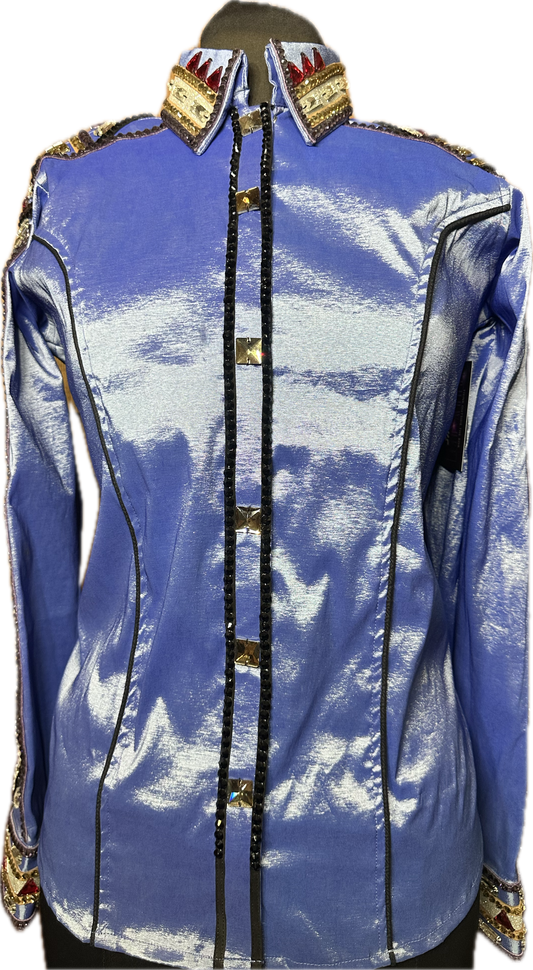 Size Large Denim Stretch Taffeta with Black, Silver, Red and Gold