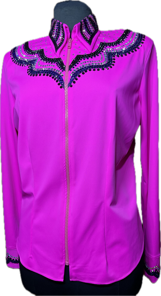 XXL Neon Pink stretch lycra with purple, black and ab accents