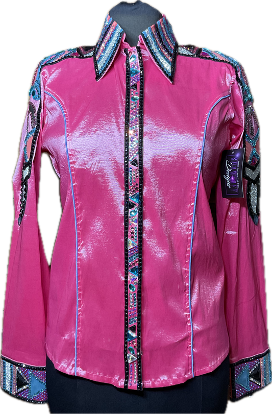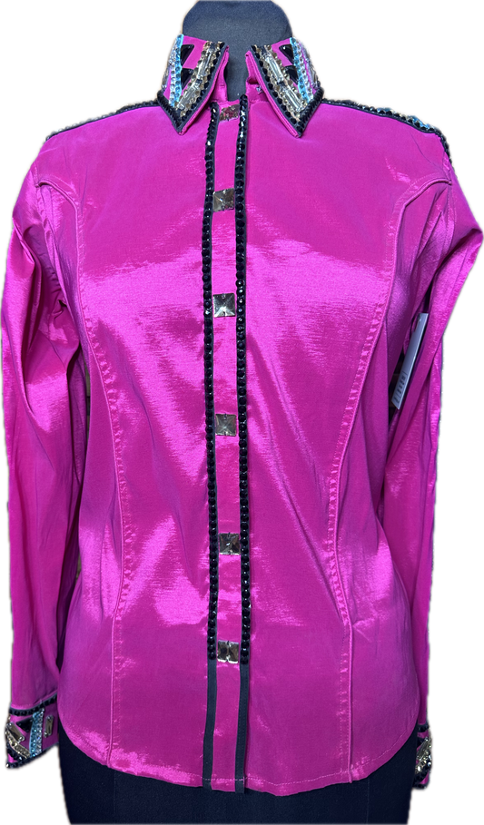 Size Large Fuchsia Stretch Taffeta with Aqua and Gold