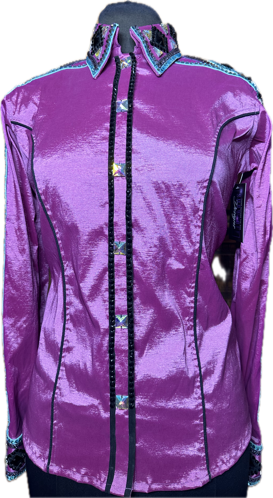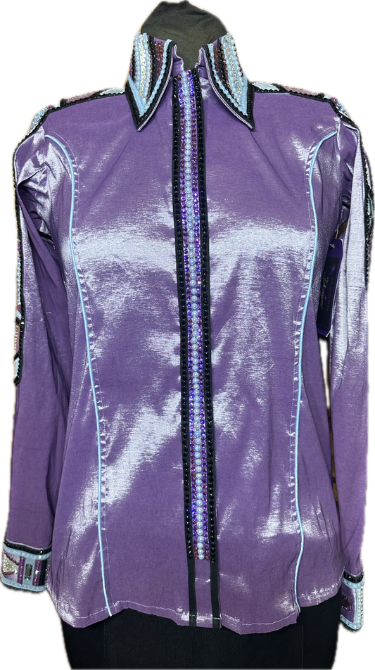 Size Medium Light Purple Stretch Taffeta Day Shirt with Black and Light Blue
