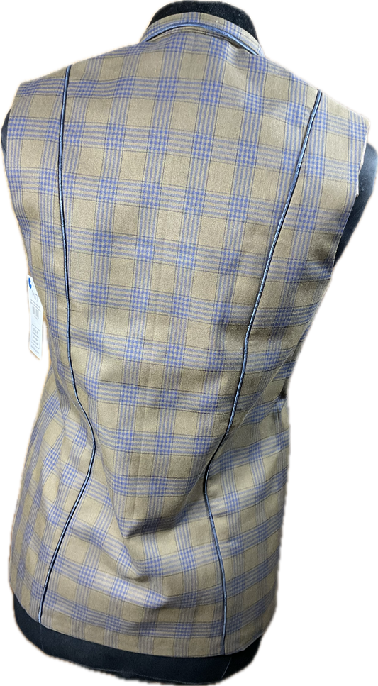 *36 Bust* Brown and navy plaid with velvet collar and navy trims
