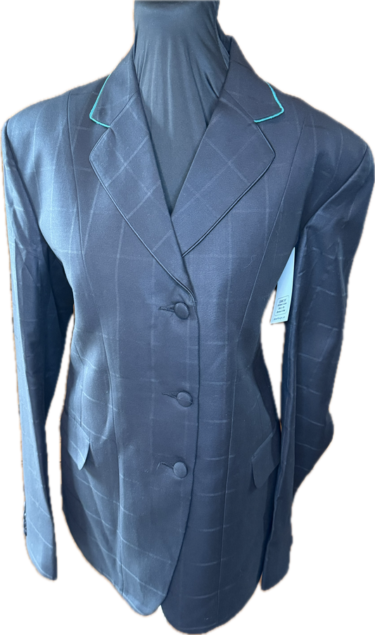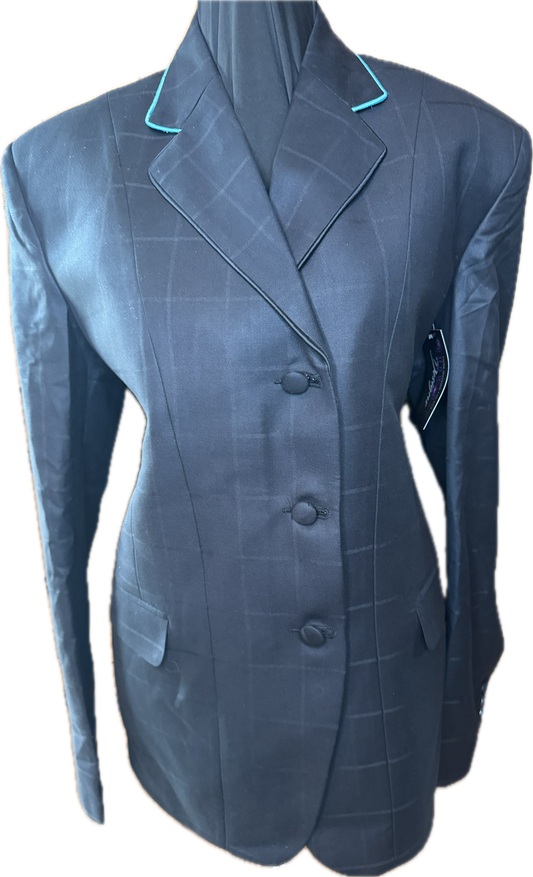 *40 Bust* Black Plaid with Aqua Piping