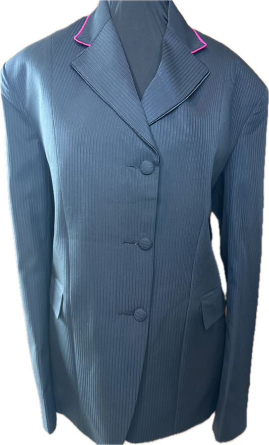 *42 Bust* Black Pin Stripe with Bright Pink Piping on Black Velvet Collar