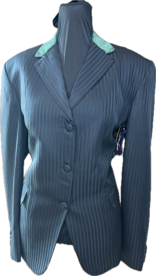 *40 Bust* Black Pin Stripe with Hunter Green Velvet Collar with Matching Trims