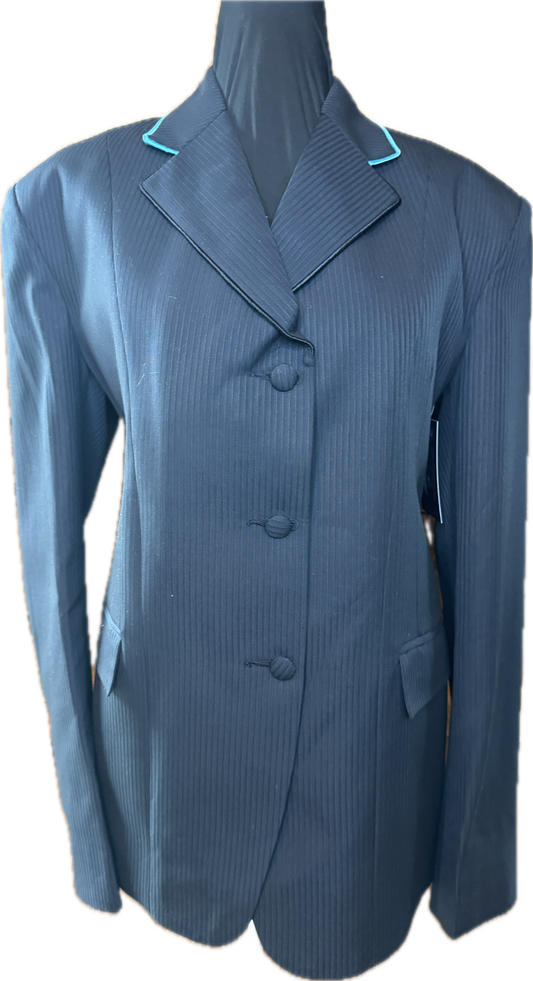 *42 Bust* Black Pin Stripe with Turquoise Piping