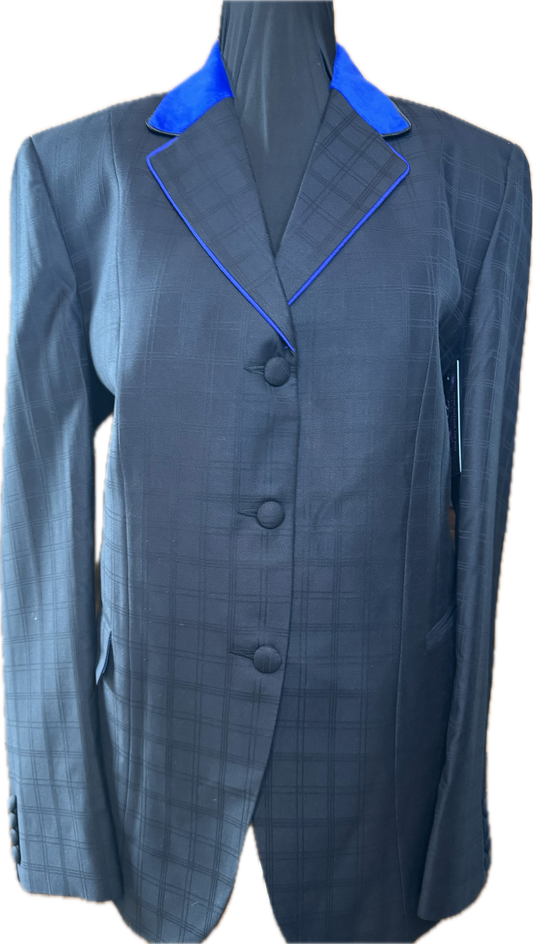 *40 Bust* Black Plaid with Royal Blue Velvet Collar and Matching Trims
