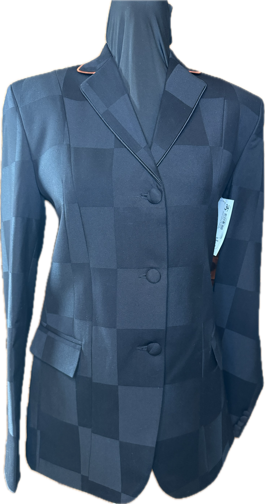 *36 Bust* Black Plaid with Dark Navy Piping