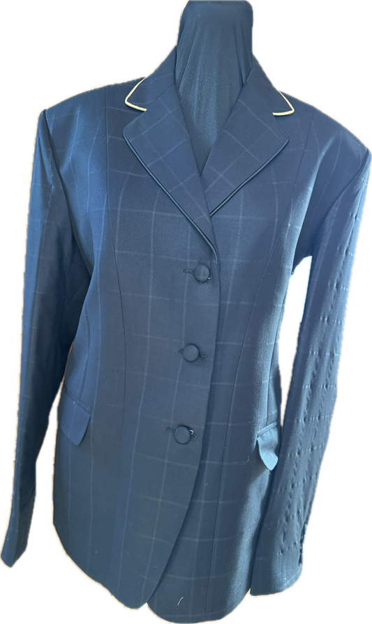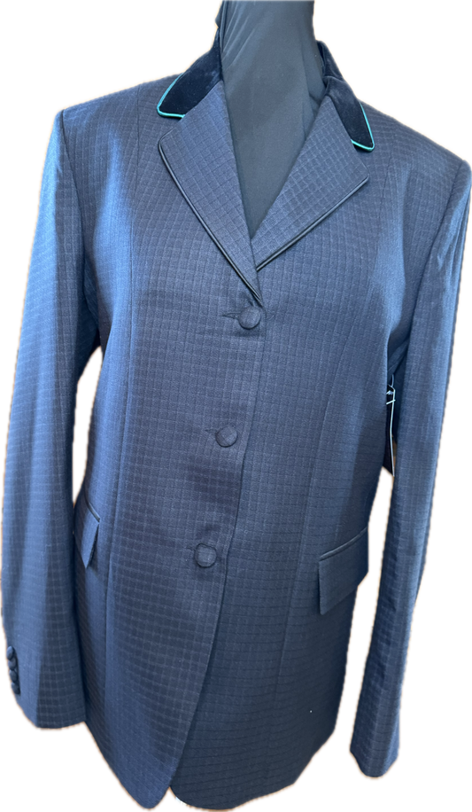 *38 Bust* Black Pint Stripe with Navy Blue and Navy Velvet Collar