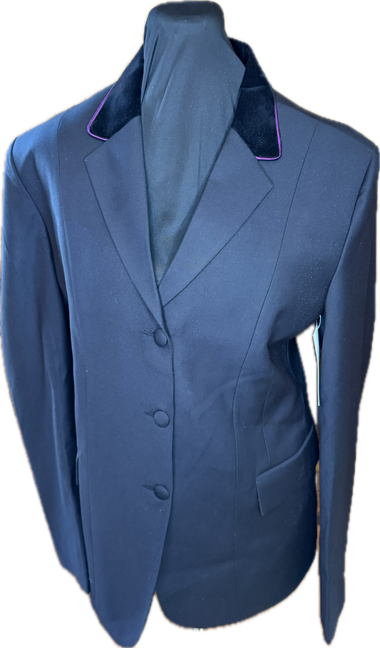 *42 Bust* Black with Deep Purple Piping on Black Velvet Collar