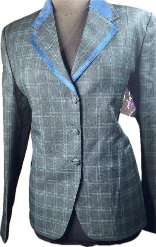 *40 Bust* Black and hunter green plaid with velvet trims with hidden zipper behind the buttons.
