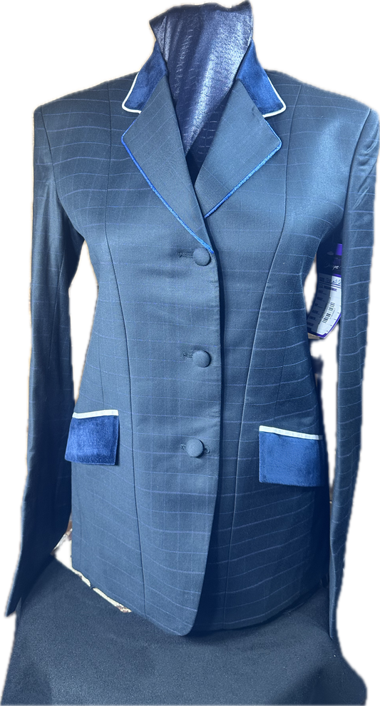*38 Bust* Navy blue plaid with plum trims hunt coat. Hidden zipper behind the buttons.