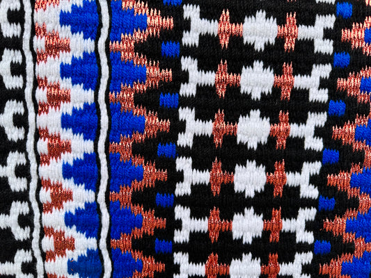 104. Oversized saddle blanket navy white French tan caramel matte metallic copper