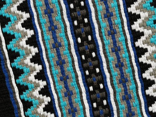 B476 Oversized Saddle Blanket Turquoise, Black, Mint Green, White, Dark Turquoise