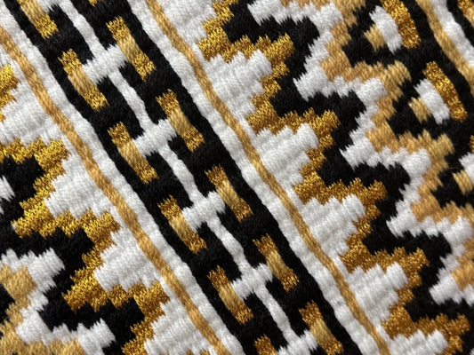 B347 Oversized Saddle Blanket Black, White, Raw Umber, Matte Metallic Gold