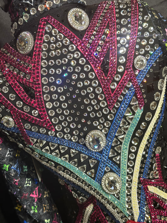 XL vest with black, clear crystals and purples